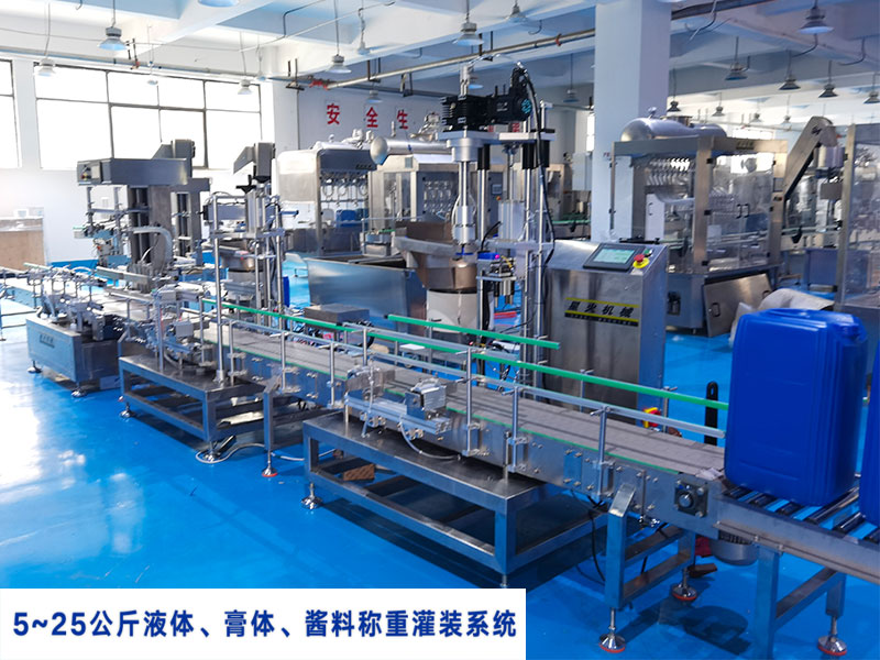 25升化工溶液灌裝機是基于質量計量原理的高度智能化機械設備,通過高精度稱重傳感配置可實時檢測灌裝重量信息,實現25升化工液體的高精度灌裝效果,稱重式液體灌裝機可適用于帶有一定腐蝕性、易揮發、高粘度、高價值的化工溶液物料的灌裝,25升化工溶液灌裝機被廣泛應用化工、建筑、農業、醫療、食品等行業批量化灌裝。