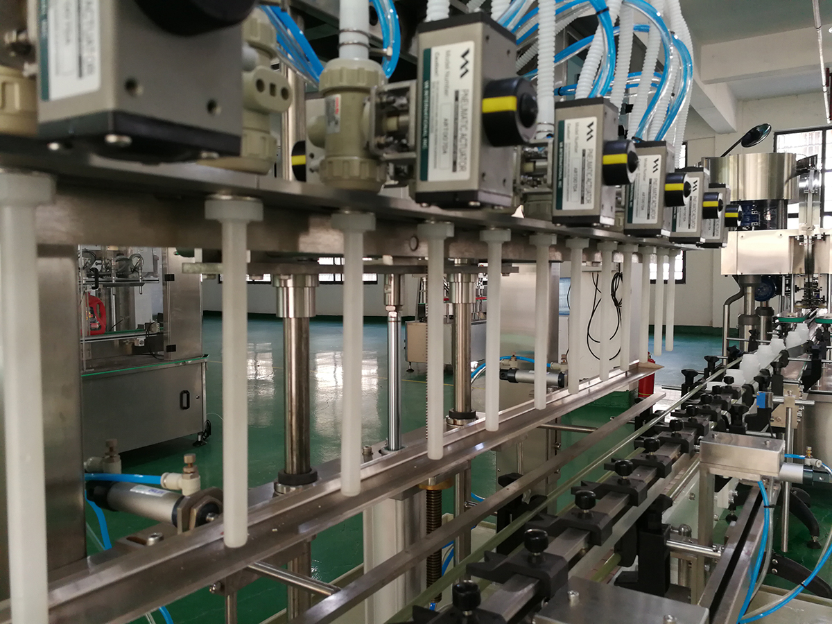 灌裝采用固定流道參數,控制灌裝時間來實現不同計量的灌裝。計量精確度控制在±1%誤差范圍,減少不必要的物料損耗,提高用戶經濟效益。每個灌裝頭的計量可以進行單獨調整,以實現灌裝計量的一致。本機設定了進瓶技術程序、無瓶、計數不到位不灌裝,只有當計數器記錄到的瓶數與設定的灌裝瓶數一致時才開始灌裝。灌裝量的多少,可以進行初調到所需灌裝量時,再進行微調,即可得到理想的灌裝計量精度。