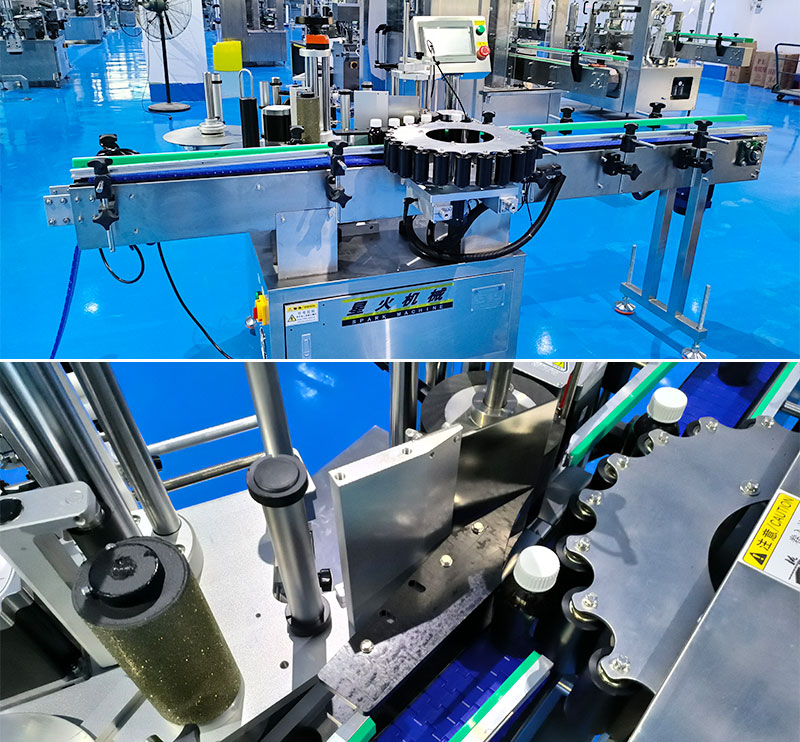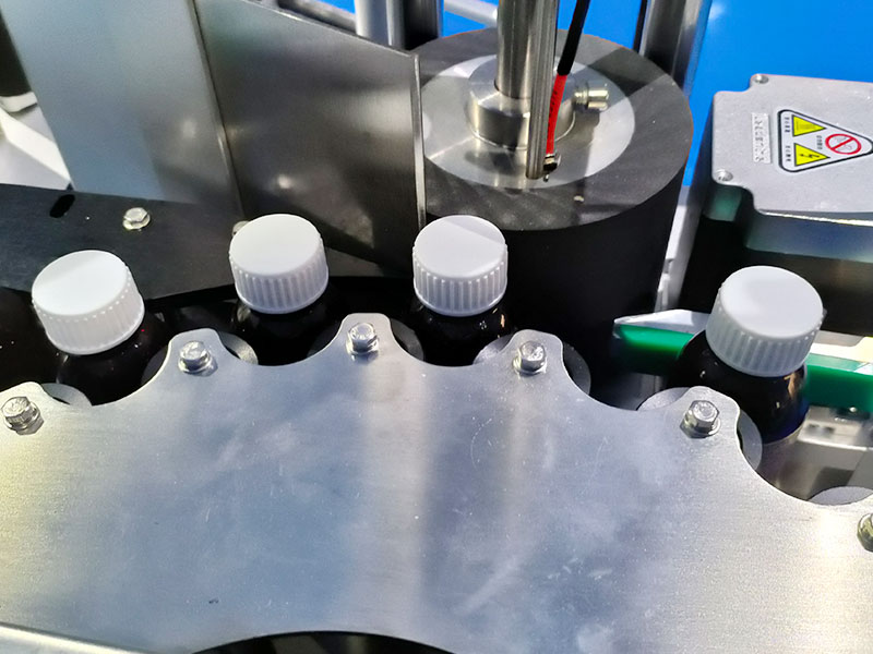 全自動星盤貼標機可通過進瓶、定位、剝標、覆標的全流程自動化作業,實現高精度的貼標運動,當操作者做好準備之后,輸送帶將會進入分瓶裝置,星盤機構將會按固定間距間歇式輸送,確保所需貼標的物料排列,避免倒瓶,全自動星盤貼標機的光電傳感裝置在視覺方面能夠實時捕捉產品的位置與特征,并且將信號傳輸至PLC控制系統,出發貼標動作,實現無物不貼標的智能控制,此時,全自動星盤貼標機的放卷輪承載標簽卷材并控制釋放速度,剝離機將標簽從格拉辛底紙完整分離,同時標帶繞行糾偏機構保證標簽牽引過程不左右偏移的粘貼在容器瓶上。在經過精準貼標動作后,通過覆標機構對標簽進行壓實處理,確保標簽牢固附著牢固。