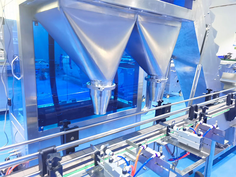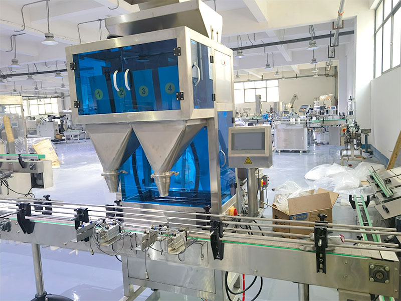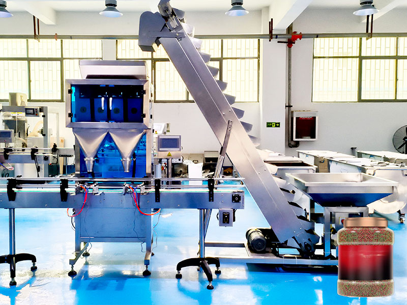 在正式開機前,應當仔細檢查各部件之間的連接的穩定性,然后觀察線路、氣源、電源是否正常,接通電源后,工作人員需要按照灌裝容器的容量規格,將灌裝重量、灌裝速度、輸送帶速度以及上料速度等信息設置在顯示屏幕當中,并且將所要灌裝的顆粒物料提前備至在料斗內,準備好足夠的灌裝容器。一切準備就緒后,按下啟動按鈕,全自動顆粒灌裝機設備自動開始運行,操作人員可在一旁密切關注設備的運行狀態,機器能夠按照設定的規格參數,自動完成全部的灌裝工序。當半成品灌裝結束后,全自動顆粒灌裝機設備將會隨著輸送帶送至旋蓋、貼標、裝箱、碼垛等工序。